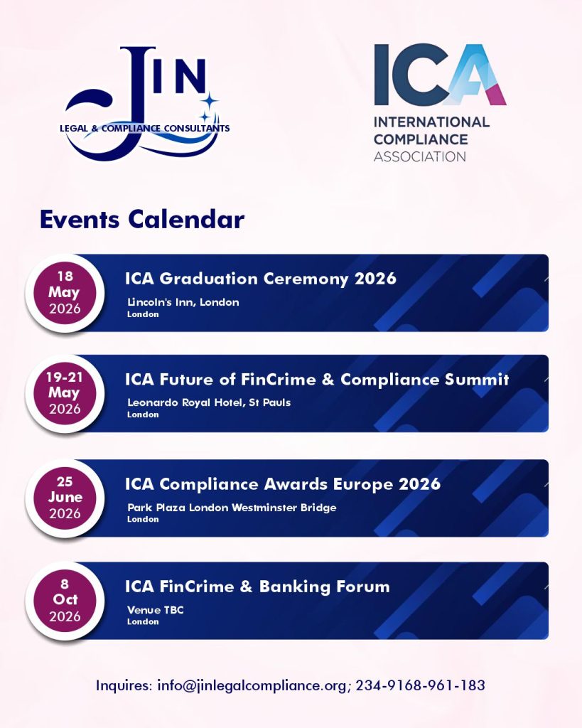 Don’t miss these opportunities for growth and networking. For more info, email us at info@jinlegalcompliance.org or call 234-9168-961-183.